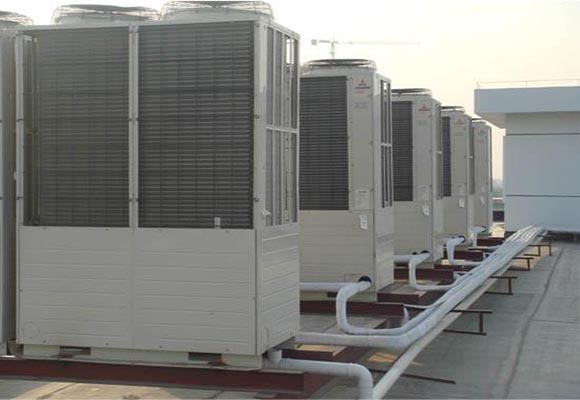 風冷式工業冷水機也可以做成分體式,將冷凝器直接放到室外去(稱室外機),蒸發器和壓縮機放在室內(稱室內機)。但考慮冷媒在冷凝器和蒸發器間傳送過程中的吸熱等問題,室內機和室外機間的距離最好控制在6米以內,另外,輸送冷媒的銅管需要做保溫處理。風扇的供電電纜及控制電纜可以和銅管一起布線走,這樣空調廠房只需開洞穿管即可。